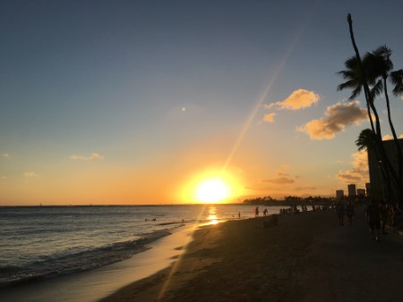 ハワイ ワイキキビーチのサンセット