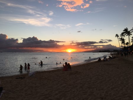 サンセットの時間に合わせてワイキキビーチに出てみました。