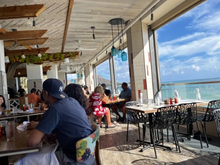 「ショアバード」の頃は、海側に入口がありましたが、この「モンキーポッド・キッチン」は、ホテルの内側、プールに近い場所に入口があります。