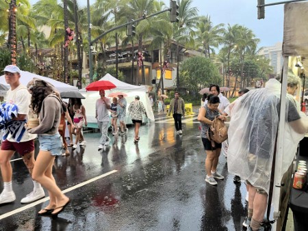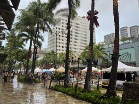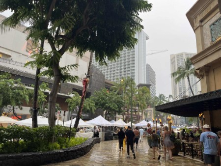 それが、ロイヤルハワイアンセンターに辿り着いた頃から降り出しました。