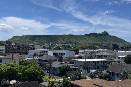 「セーフウェイ」カパフル店の2階の駐車場から見えるダイヤモンドヘッド